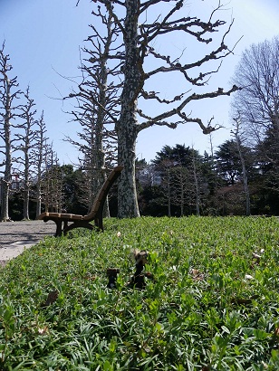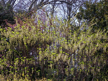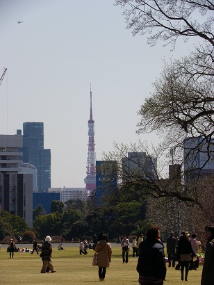 この花。キブシ? アバターに出てくるご先祖さまの 木に似ている。 花見には少し早い御苑で 東京タワーを見る。