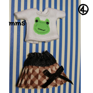 かえるTシャツ +ブラウンチェックプリーツS 1000円